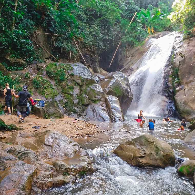 After lunch, we trek about 15 minutes down to the waterfall for swimming and relaxation. From the waterfall, we continue trekking for about 1.5 hours back to the Akha village, where the car will take us back to the city.